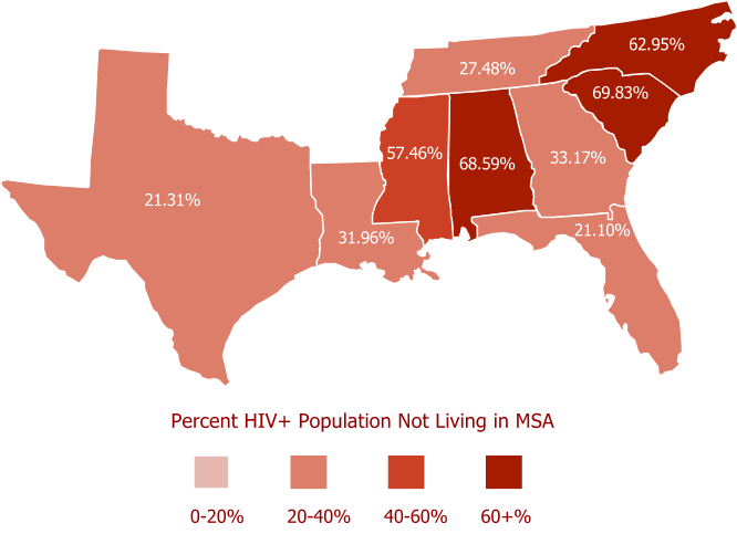 Percentage of HIV-Positive Individuals in the Deep South States Living Outside an MSA Eligible for CBO HIV Prevention Funding.[1]